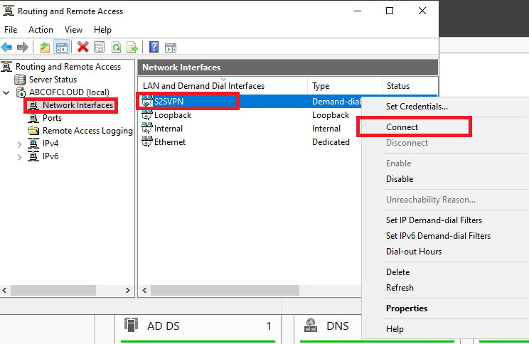 Step 2: Go to the Routing and Remote Access and then click on the Network Interface, right-click on the Demand-dial, and then click on connect.